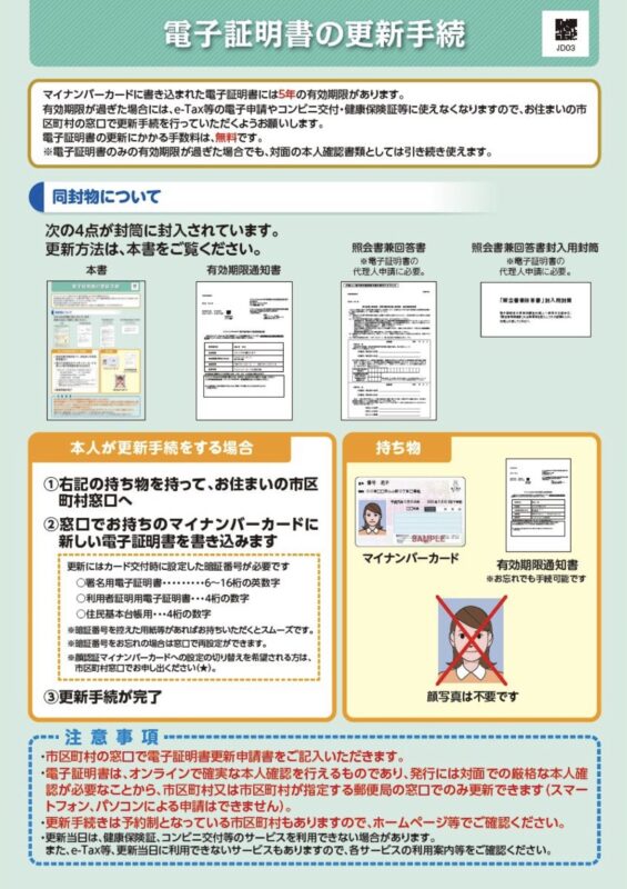 電子証明書の更新手続は住民登録のある市区町村窓口で更新する必要があります。